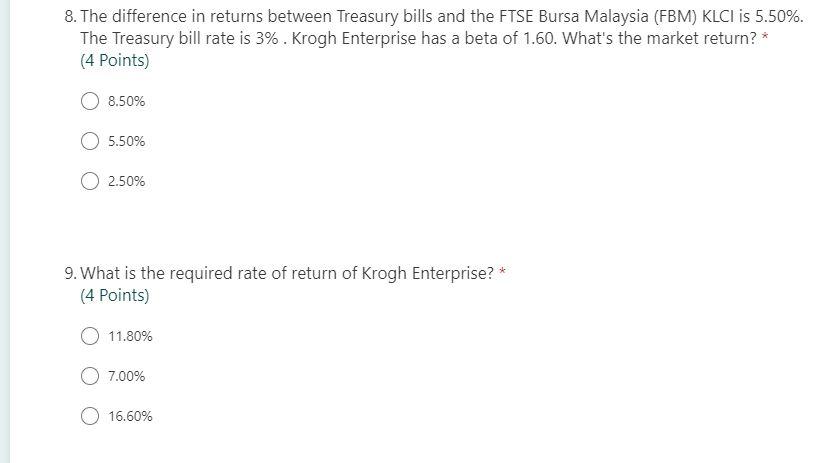 Solved 8 The Difference In Returns Between Treasury Bills Chegg Com